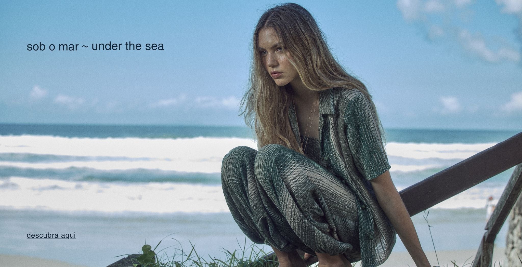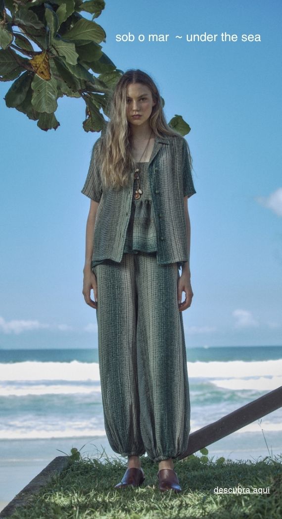 Essa coleção nasce de uma observação atenta e sensível de tudo aquilo que existe e acontece próximo ao mar. Do tempo que desacelera, do ar que atravessa a pele, da luz que desenha volumes e sombras ao longo do dia. É desse território entre natureza e sensorialidade que surgem os primeiros impulsos criativos.