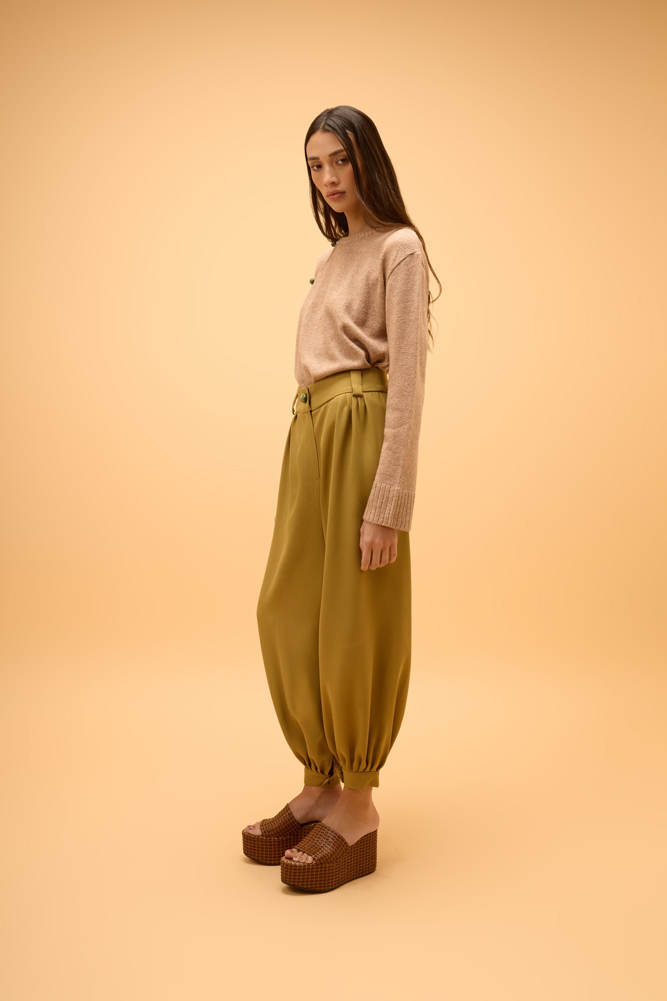 Calça Pregas Crepe Horizonte