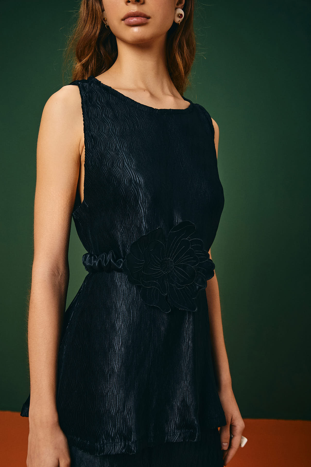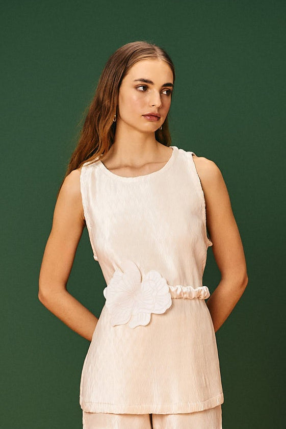 Cinto de elástico , fechamento em botão de pressão e flor bordada e aplicada manualmente vem junto